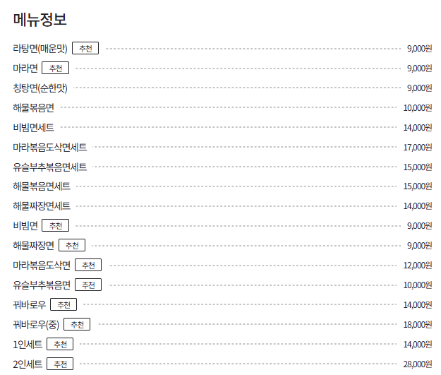 저희는 라탕면(매운맛) - 9,000원과 해물짜장면 - 9,000원 각 1개씩 주문했습니다.